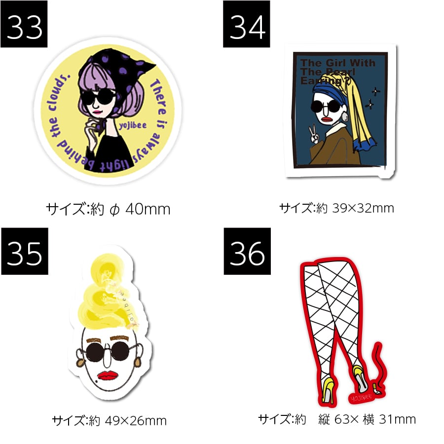 ご自身で好きな合わせができるyojibeeイラストのステッカーです。